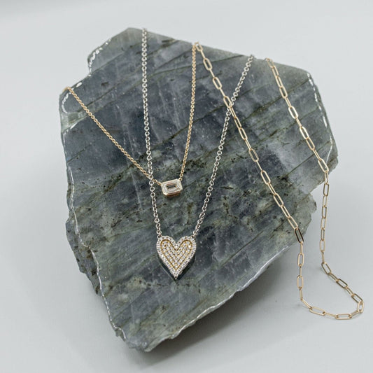 14KT Two-Tone Pave Diamond Heart Pendant Necklace - One of A Kind