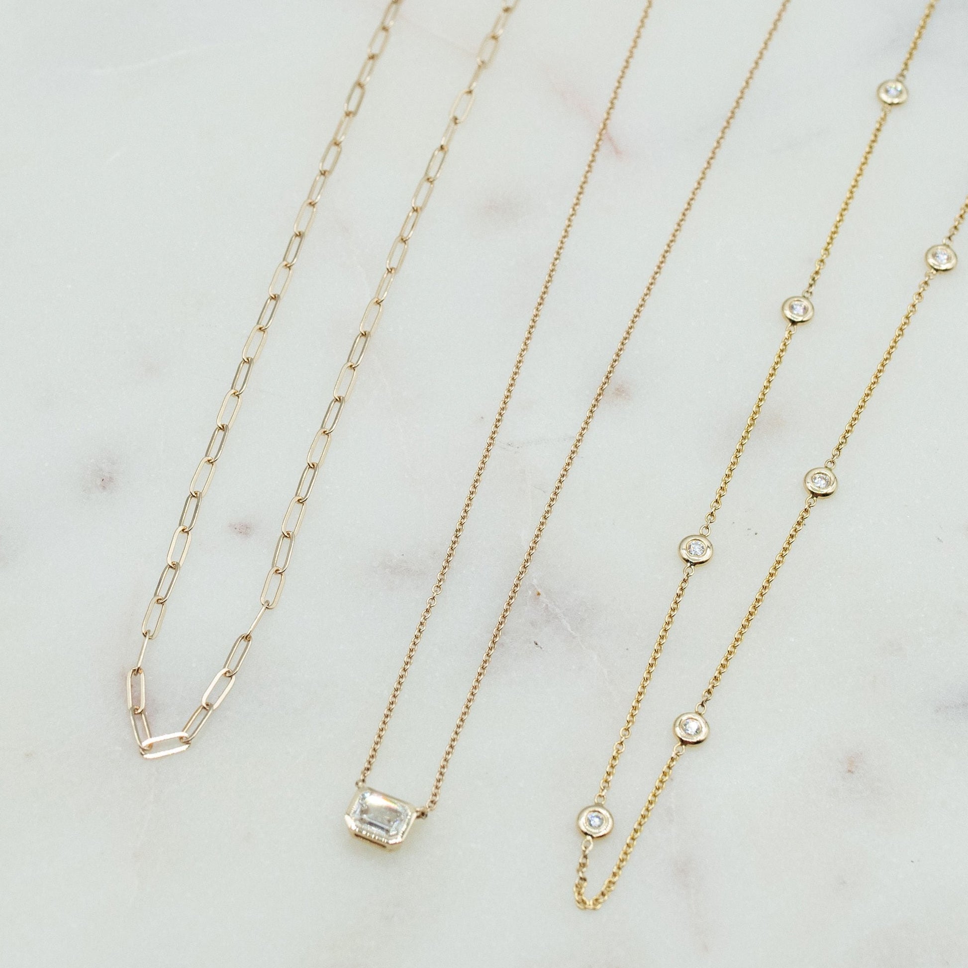 Our eye-catching half-carat emerald diamond set in a modern bezel is an instant everyday signature piece to take you from day to night.